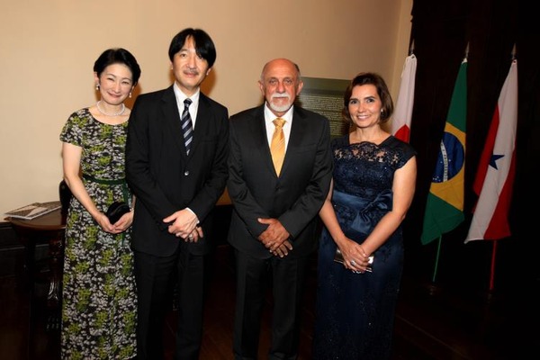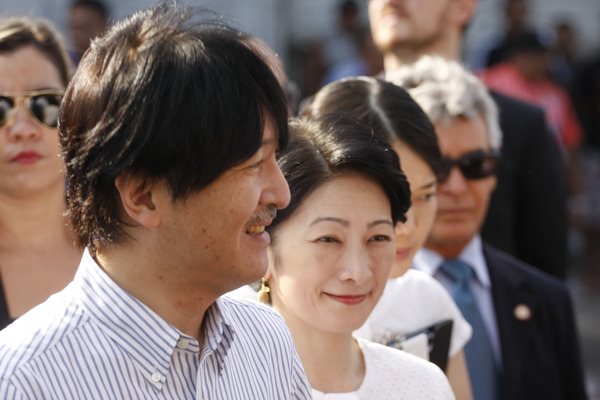 O principe Akishino, segundo filho do Imperador Akihito, do Japao, e a sua esposa, a princesa Kiko, cumprem agenda na cidade, como parte das comemoracoes pelos 120 anos do Tratado de Amizade.