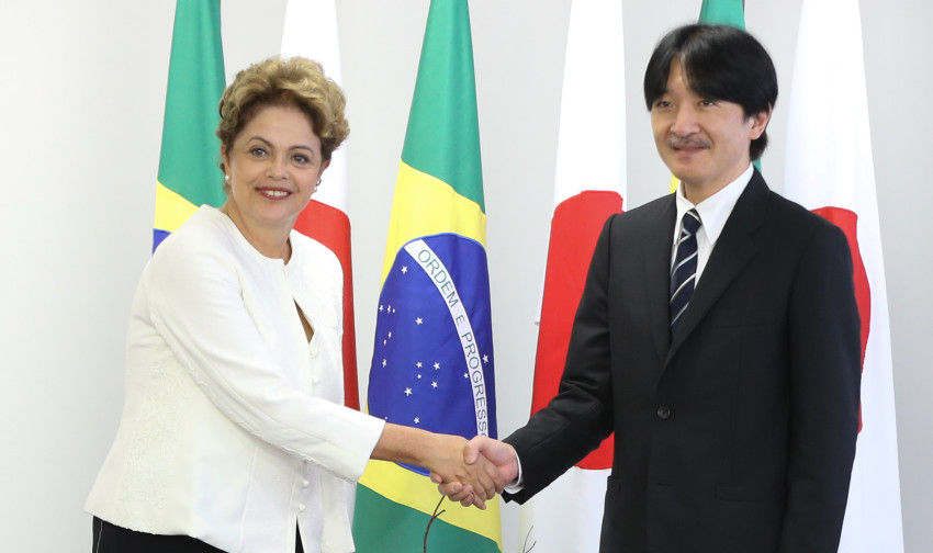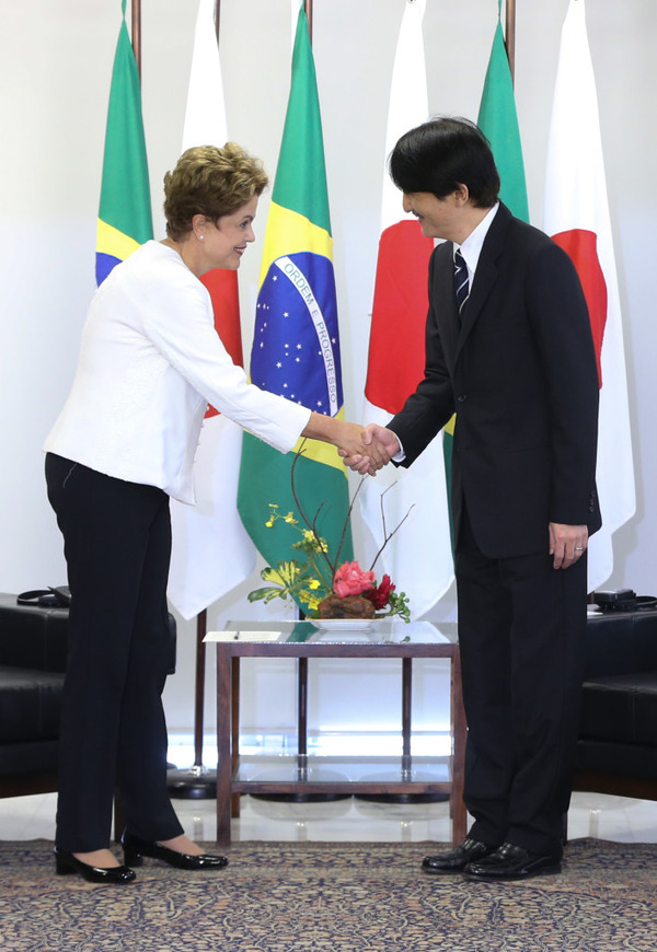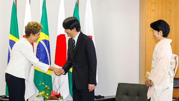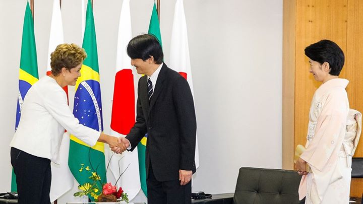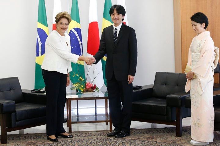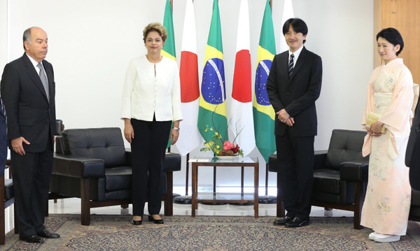 Prince Akishino and Princess Kiko meet some of Brazil's Japanese immigrants on Thursday.(11/5) ジルマ・ヴァナ・ルセーフ (Dilma Vana Rousseff)大統領と https://www.facebook.com/PalacioDoPlanalto/?fref=ts より http://fotospublicas.com/presidente-dilma-rousseff-durante-visita-do-principe-e-da-princesa-akishino-do-japao/ より http://blog.planalto.gov.br/dilma-recebe-a-visita-do-principe-e-da-princesa-akishino-do-japao/ より 外務大臣主催の午餐会