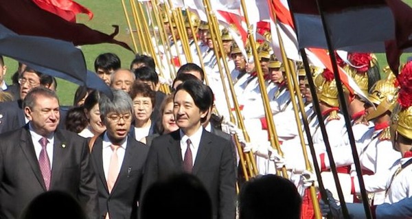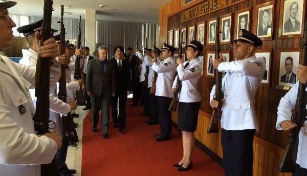 連邦議会の中央玄関に並ぶ、儀仗兵の隊列の中をゆっくりと進まれる秋篠宮さま 秋篠宮両殿下=連邦議会の記念式典にご臨席=罷免運動のとばっちりも=当地メディアも大々的に報道 【既報関連】秋篠宮同妃両殿下は5日午前、首都ブラジリアの連邦議会における日伯外交関係樹立120周年記念式典にご臨席された。エドゥアルド・クーニャ下院議長夫妻や伯日友好議員連盟の西森ルイス会長ら同議連関係者、地元日系人代表が出席し、120年前のこの日に仏パリで締結された「日伯修好通商航海条約」が移住開始の契機となり、日系社会のブラジル貢献につながったことを賞賛した。おりしも同議長は汚職疑惑などの渦中にあり、そのとばっちりを受けるような一幕も。それもあってか伯字メディアは同記念式典を含めて前後の様子をこぞって報じた。
