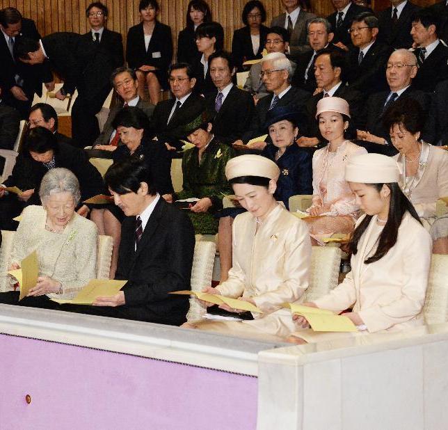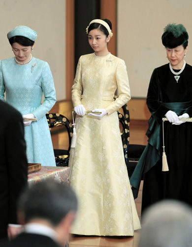 プラチナにダイヤモンドがあしらわれたティアラは、ほかの宝飾品とともに総額約2800万円で新調されたもの。27年1月2日の新年一般参賀に初めて臨み、宮殿「長和(ちょうわ)殿」のベランダに笑顔で立たれた。 同14日に宮殿「松の間」で行われた「歌会始の儀」では以下のようなお歌を詠まれた。 〈弟に本読み聞かせゐたる夜は旅する母を思ひてねむる〉