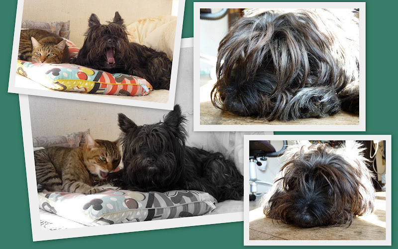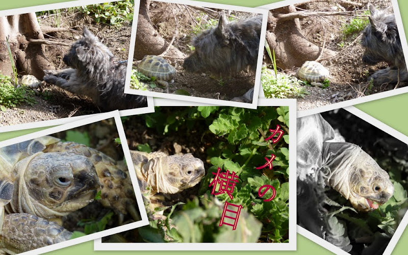 土日の疲れを引きずったまま月曜日に出社する、という流れが続いていたこのごろ。 月曜日のコトを考えると、土日にハジけるコトが出来ないでいました。 んが。 あらかじめ月曜日にお休みを取ったコトで、日曜日、やっとぽんたの毛を刈ることが出来ました。 刈って洗って、切って洗って、と、コレが意外と足腰にクるのと、ここんとこ、天気が悪かったから。。。 とは言え、あまりにヒドいアリサマになってしまったぽんた君。↓ 犬って、前髪ウットーしく感じないのだろうか。。 イッソのコト、伸びるだけ伸ばして、 チョンマゲみたいにしようかと思ってたけど、 飼い主にソコまでの根性もなく、ついにカット。 心なしかスッキリした感じか、ぽんた。 つか、若返った。笑 表情がわかるようになり、 飼い主としても助かる。 久々のお天気なので、カメのプーさんもお外に出す。 ぽんた興奮。カメ横目。 ※初めてピカサで画像編集してみたのをアップしてみました。。。