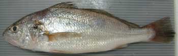 先日ご紹介した、我が家の晩御飯に登場した「いしもち」です。 耳の中に、大きな石が入っているところから名付けられました。関西ではグチと呼ばれ、かまぼこの原料になっています。とても淡白なお魚ですが、刺身や蒸し物にすると絶品です。 |