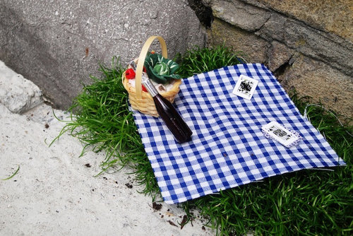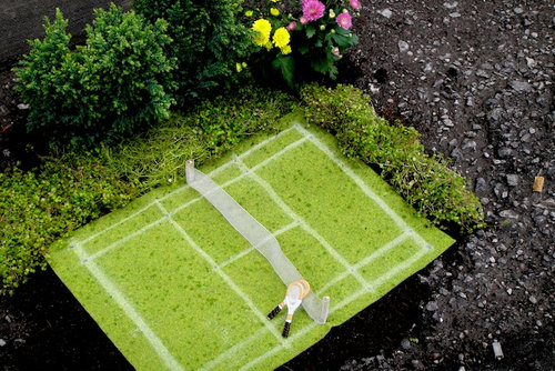 ミニチュアは風雨に耐えるものでないと長期間置いておけませんが、ネガティブなイメージの道路の穴も、花や緑が生い茂っているだけで雰囲気が一変するものですね。
