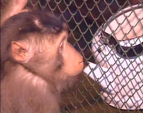 カザフスタン東部にあるカラガンダ動物園では、赤ワインにフルーツや蜂蜜、レモン、砂糖、お湯などを加え、サルたちに提供しています。 もっとも、サルたちのいるおりは27度と適温にされているのですが、専門家によると、インフルエンザなどの予防も兼ねているそうです。