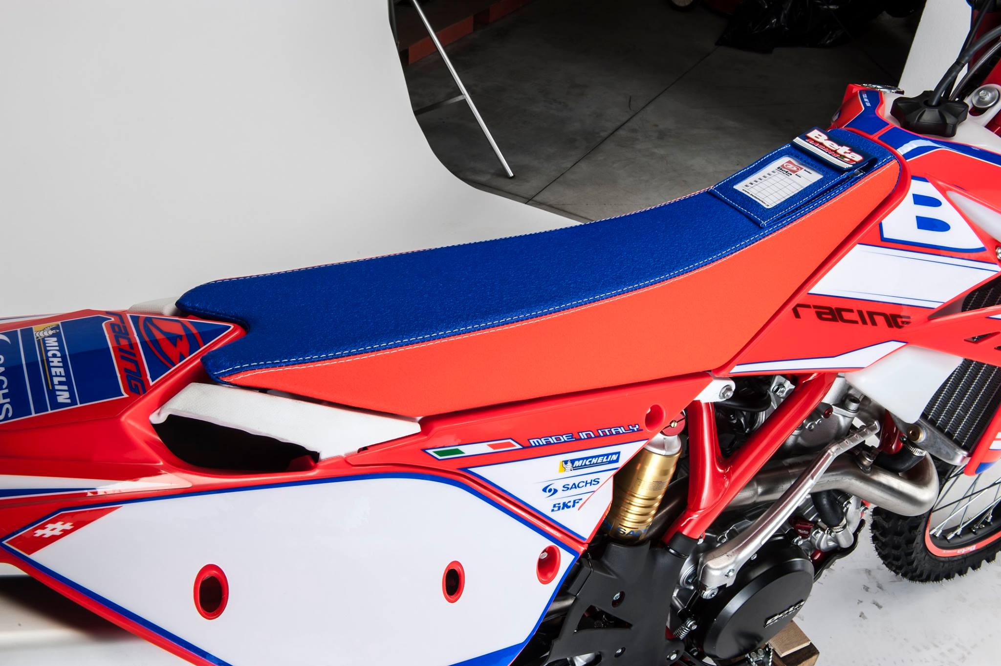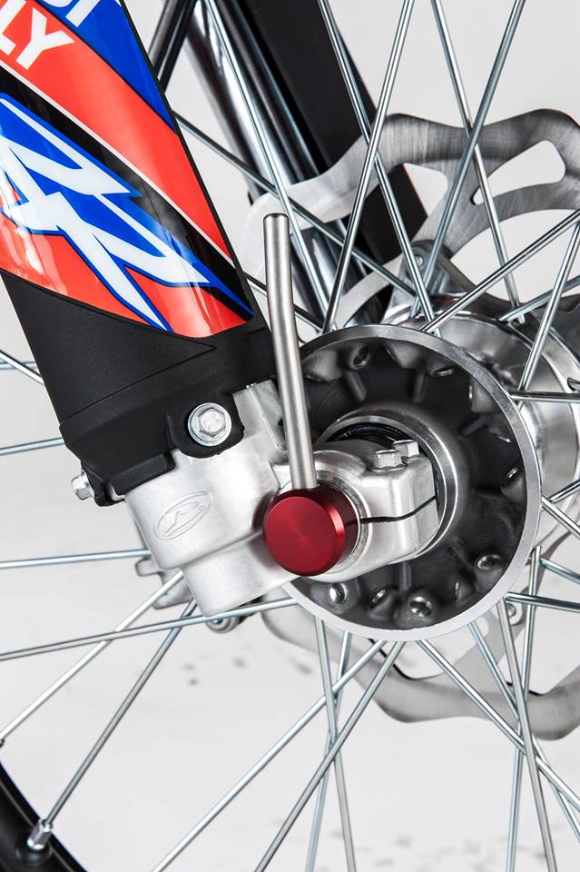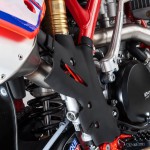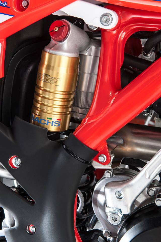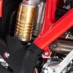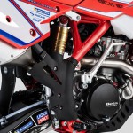 フィルターボックスカバーのキャッチ金具はより安全で信頼性の高いものへ変更。 ザックス製48ミリフロントフォークは衝撃吸収能力向上の為にシムセッティングを変更。