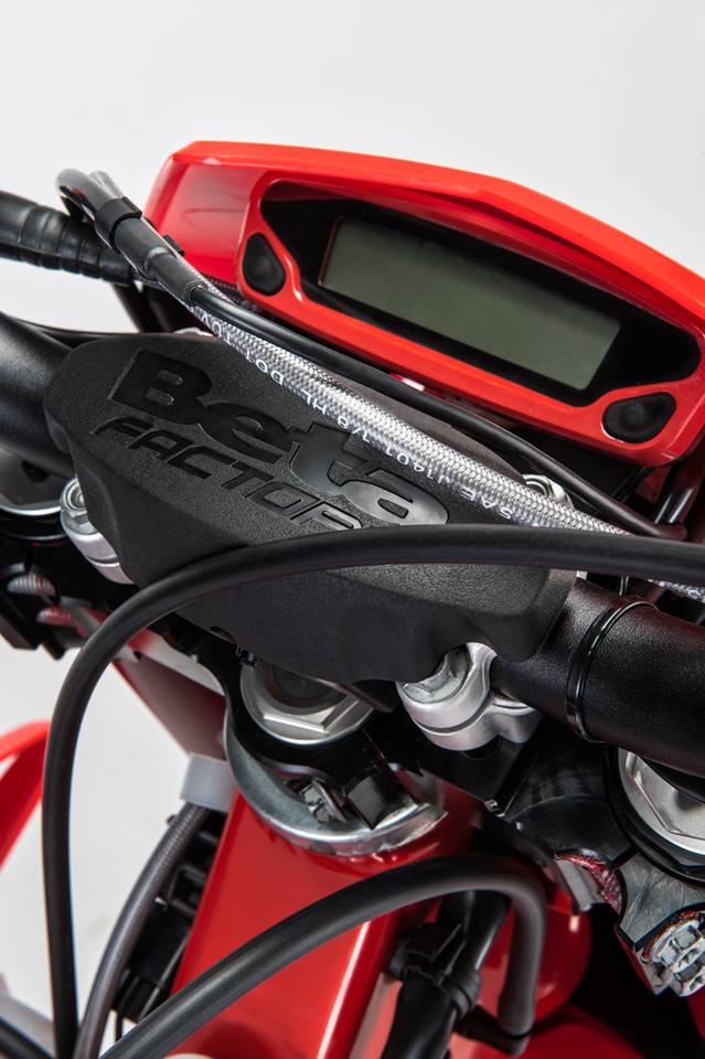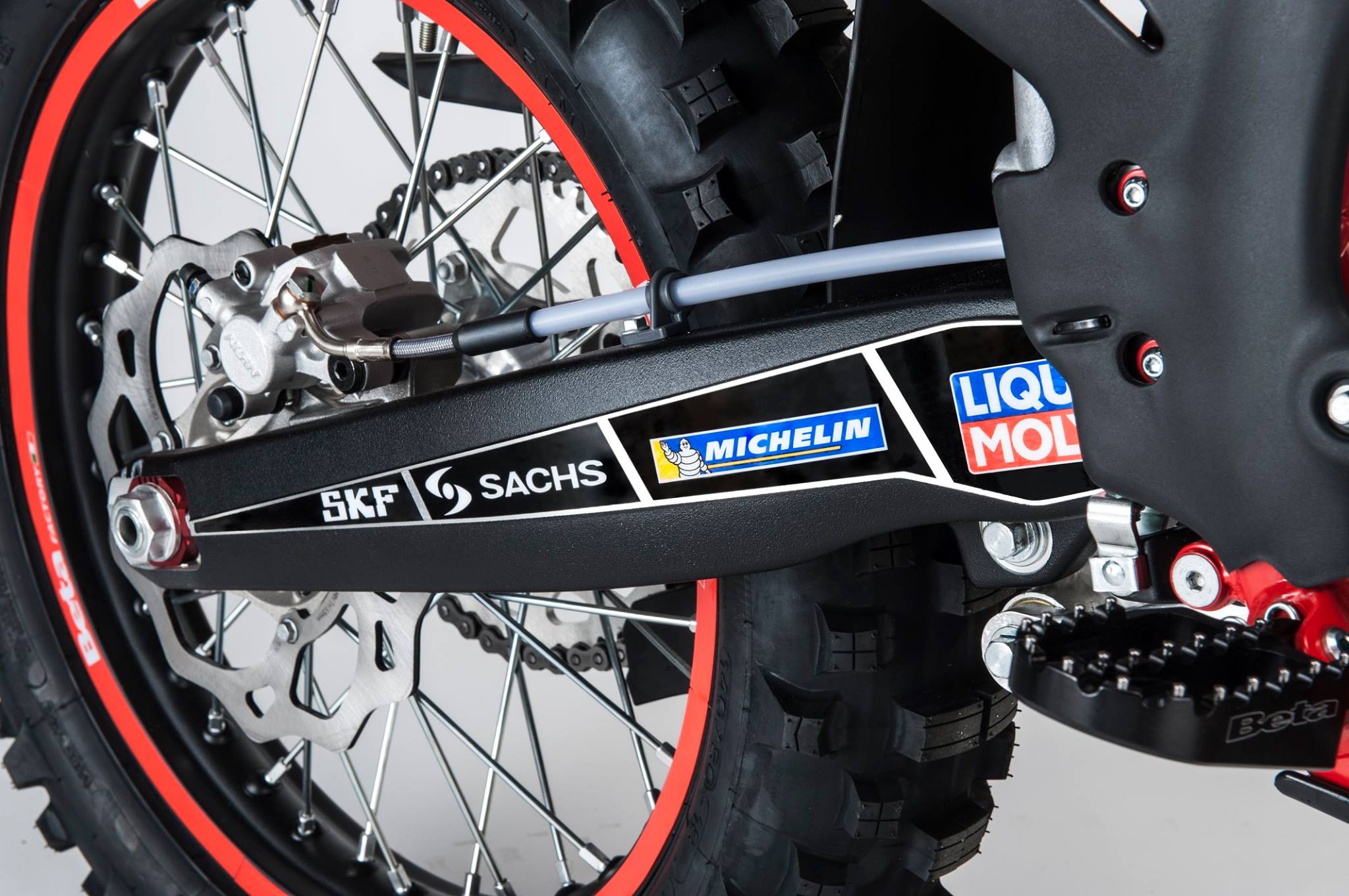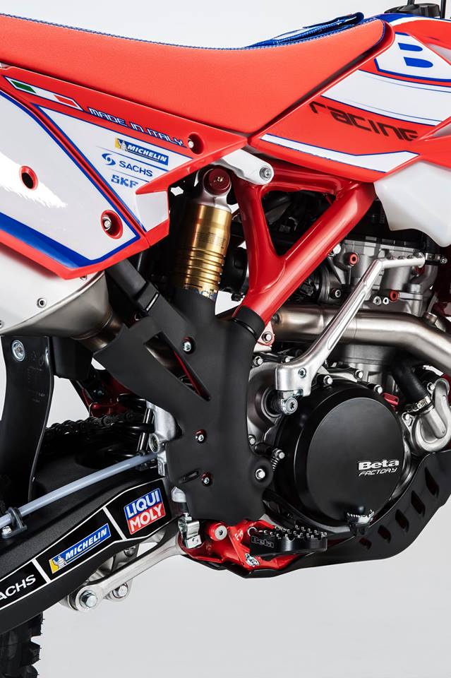 このシステムは、2015X-Trainerで既に導入され、信頼性が証明されています。 ユーザーは混合ガソリンのプレミックス作業から解放され、一般道での給油も容易になりました。 システムは、エンジンの回転数とTPS(スロットルポジションシステム)によって負荷を測定し、ECUの制御により使用状況に応じた最適なエンジンオイルのミックスを実現しています。 これにより従来のプレミックス2ストロークに比べてエキゾーストスモークが50%減少します。 この他にも車体、エンジンとも細部までブラッシュアップを受けさらに戦闘力を増しています。