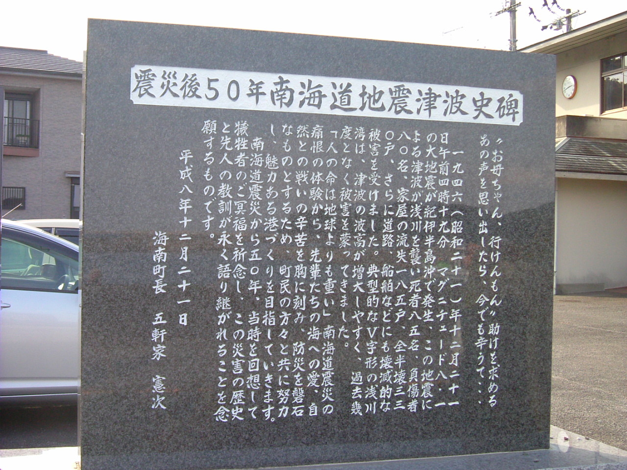 <昭和南海地震の記念碑(徳島県海陽町)>