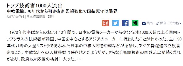 「モノづくり大国ニッポン」と言って胡座をかき、人や技術を大切にしない日本企業が新興国にやがて負けるのは必然だったな。 ![]() ![]() ![]()