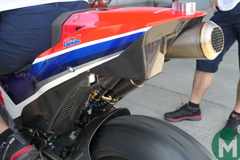 2月のセパンテストで最初に見られた、箱の中身は誰にもわかりませんが、RC213Vの出力とトルクを向上させる大きなエアボックスと新しい燃料インジェクタのために、