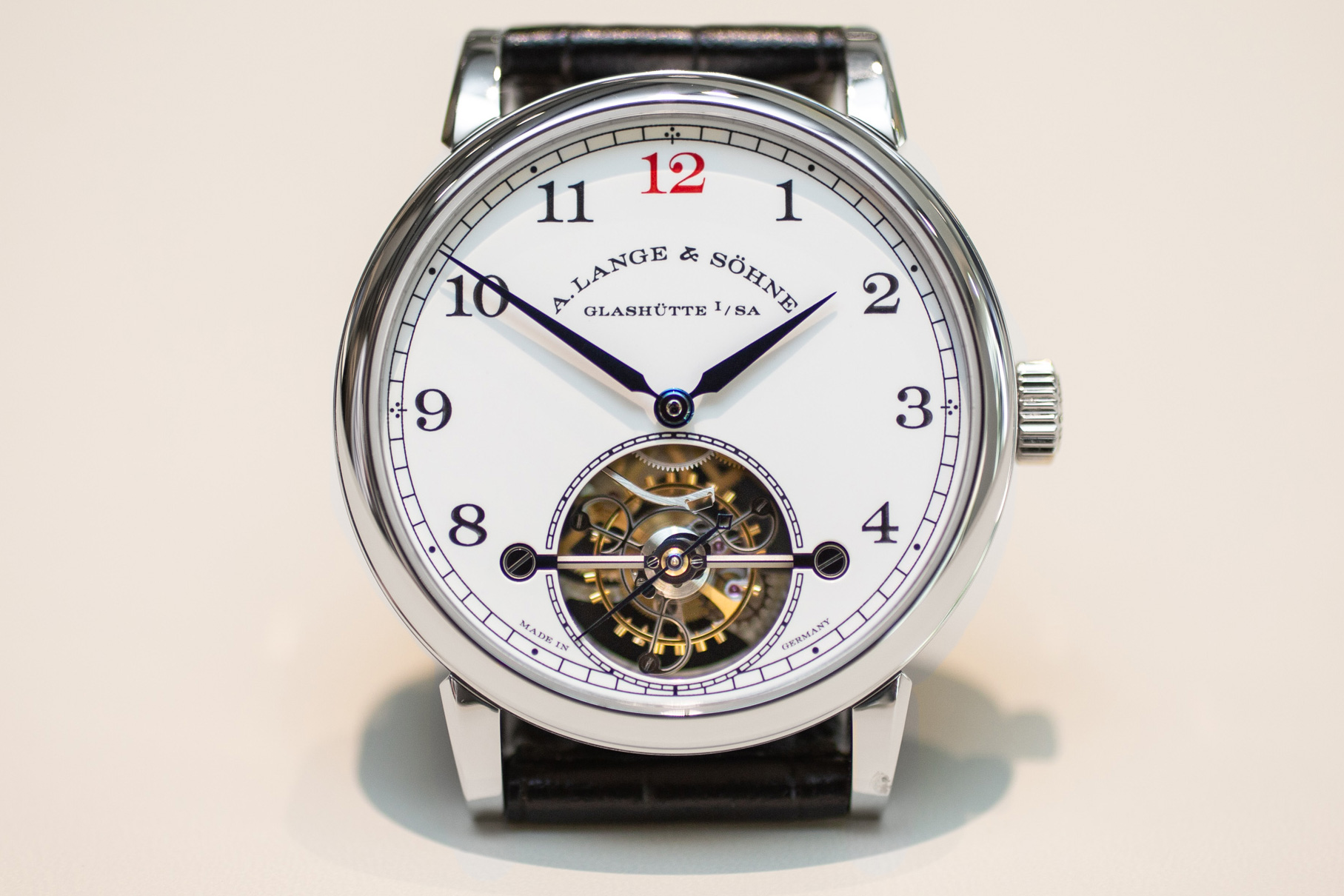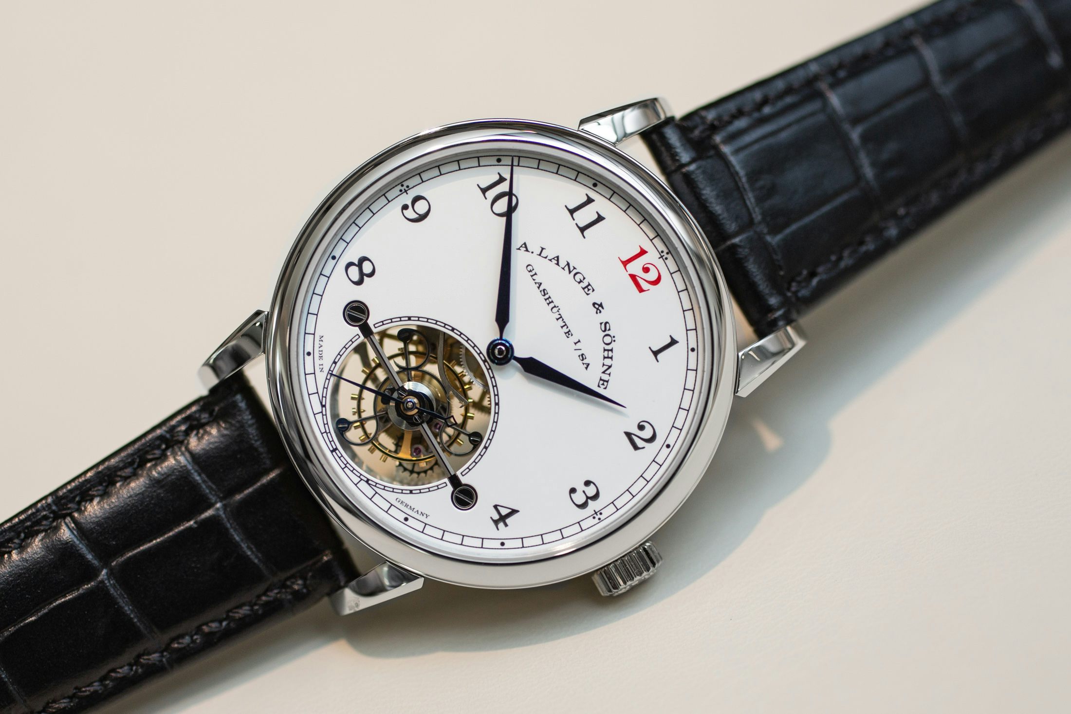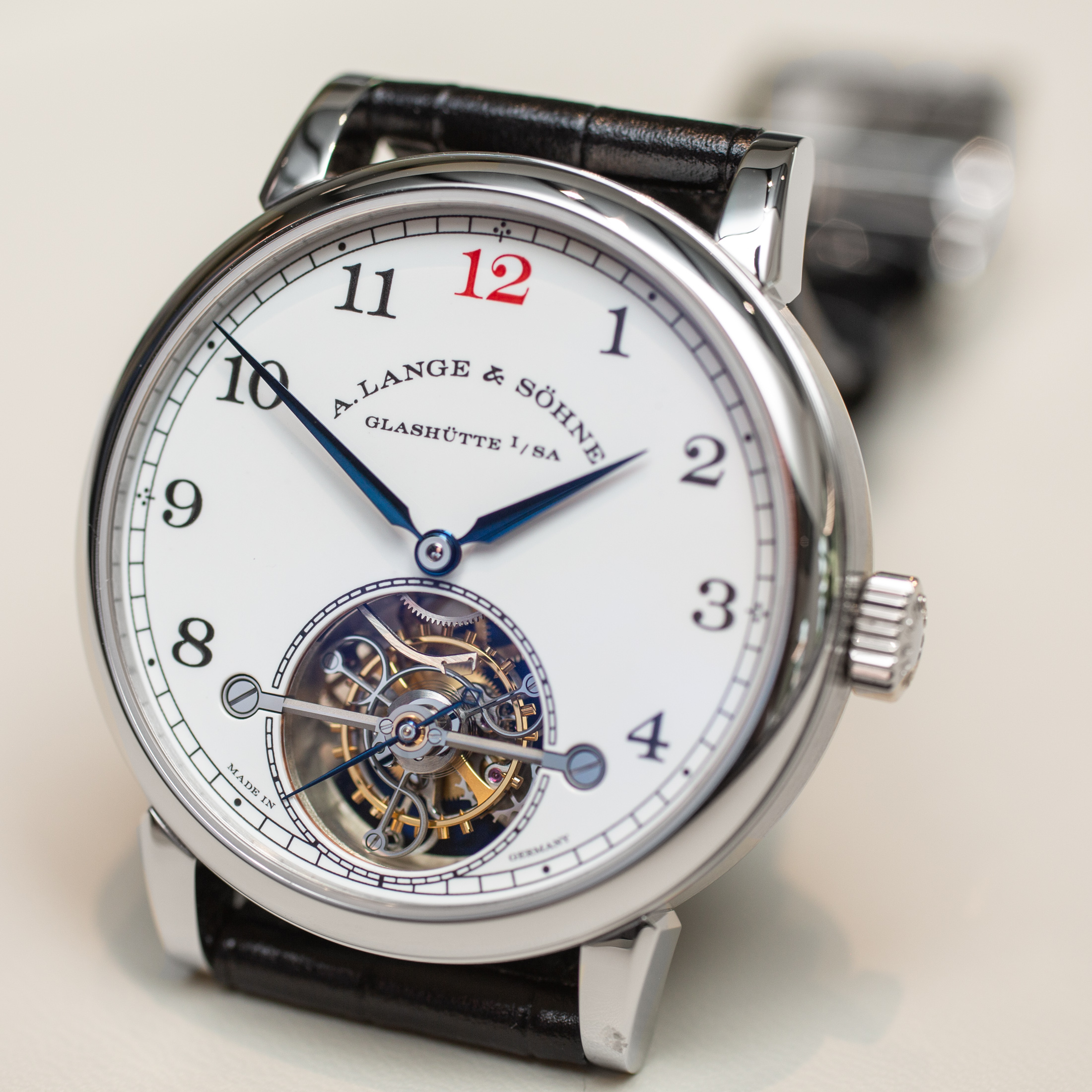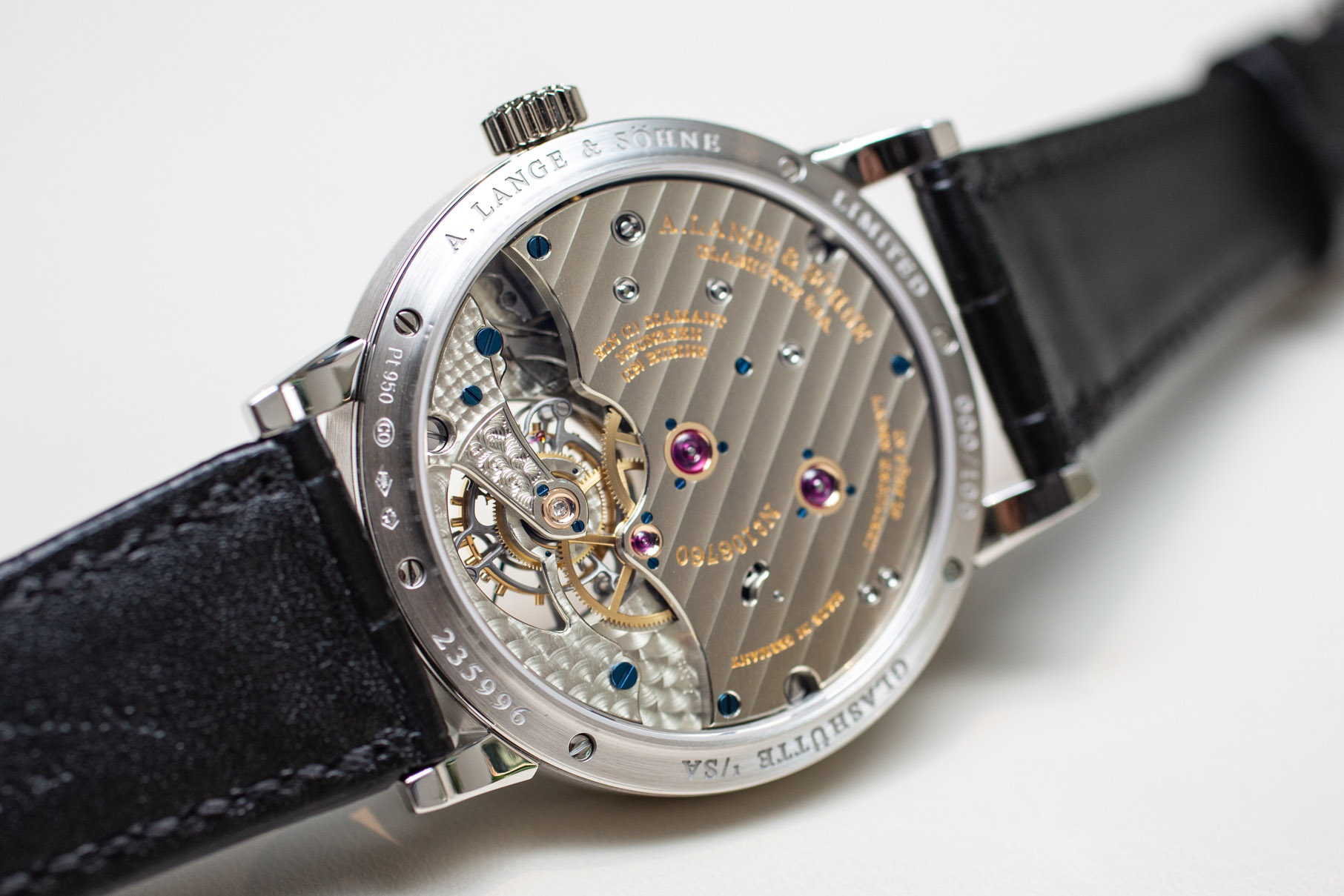 限定版は、鮮明なエナメルダイヤルを強く使用する、ランゲのハイテクなトゥールビヨンを取り入れています。