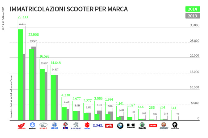 ヨーロッパ20カ国で販売登録されたオートバイ、スクーター、モペット