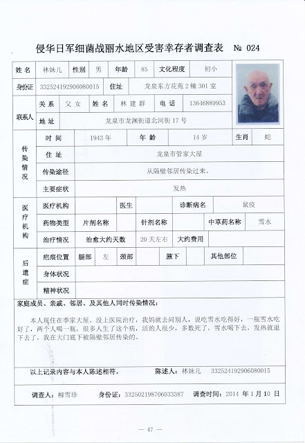 NHKスペシャル「731部隊の真実〜エリート医学者と人体実験〜」 ※1949年のハバロフスク裁判の録音テープが見つかった!! 「731部隊の真実〜エリート医学者と人体実験」起こし ナレーション 部隊から高額の報酬を受けとっていた京大の田部井和。 実験室の研究から実戦使用の段階へと進んでいきます。開発したのは細菌爆弾。大量感染を引き起こす研究を始めていたのです。 一度に10人以上の囚人を使い、効果を確かめたと部下が証言しています。 ハバロフスク裁判のテープ音声 731部隊衛生兵(田部井の部下)古都証人 安達の演習場で自分の参加した実験はチフス菌であります。それは瀬戸物で作った大砲の弾と同じ型をした細菌弾であります。 空中でもって爆破して地上に噴霧状態になって、その菌が落ちるようになってました。そして菌が地上に落ちたところを被実験者を通過させたのと、それから杭に強制的に縛り付けておいてその上でもって爆破して頭の上から菌を被せたのと、2通りの方法が行われました。 大部分の者が感染して、4人か5人が亡くなりました。 ※731部隊で実験材料にされた人たちは、囚人ではない!!裁判にもかけられず、微罪で逮捕された人がほとんどだ!! 当時の日本の教育(今でも一部見られるが)は、日本国民は1等国民、他は2等国民、とか3等国民とか呼び蔑視していた!!中国人はチャンコロと呼び、非人道的な扱いをしていた!!中国の人たちは、自分たちの土地を侵略されたのだから、抵抗するのは当然だ!! ※笠原十九司著『日中戦争戦争全史』(下)には以下の記述が見られる。 「日本軍が華北で使用した生物兵器は華北の民衆に深刻な犠牲をもたらした。細菌兵器使用の実態が判明しにくいので、統計は不完全であるが、日中戦争以後8年間で70回以上細菌兵器を使用したと推定され、そのうち具体的な死亡者がわかる25件では、兵士・民間人47万人以上が感染して死亡した。山西省孟県における調査では、1942年から45年の間、日本軍が発射した糜爛性(びらんせい)毒ガス弾とチフスなどの細菌兵器により、全県16万人のうち、95%が感染して病気になり、1万1千人が日本軍に殺害され、3万人近くが病死した。」 ※731部隊員であった金子純一が戦後、東大に出した論文には、中国の6か所の地名が細菌戦の行われた場所として、書かれている。 また、戦後アメリカのフェル博士が731部隊員を尋問して作成したフェルレポートには、12か所で、細菌戦が行われたとある。 ※日本軍は、国際条約違反の細菌戦を大規模に行なった。しかし、日本政府は、731部隊での人体実験、細菌戦等の証拠をすべて隠蔽し、この事実を認めようとしない!! ※中国の人たちは、日本軍に土地や住宅を強制的に奪われたから、日本軍に反発するのは当然だ!!匪賊とは日本人が勝手に付けた蔑称だ!! ※番組では、川島清を第一部(細菌研究)部長としているが、第4部 細菌製造部部長(軍医少将)の時もあった。 ![]() ※勿論731部隊の支部や他の防疫給水部に送られ、人体実験に関わった多くの医学者がいた!! 中国にあった日本軍の陸軍病院の軍医等も、生体手術演習と称して、生体解剖をしていた。場合によっては、日本人も実験材料にされた。 ※この731部隊には、皇族の竹田宮が関わっていた。そして、研究費などの予算は昭和天皇の裁可がなければ出なかった。 天皇の弟・秩父宮、三笠宮も視察に来たし、もしかしたら昭和天皇も来たのではないか?? unit731 ※731部隊へは当時製薬会社等からの寄付もあった!!(大正製薬・・・・) ※ロ号棟を建設したのは大林組、松村建設、特設監獄は鈴木組が作った。 黒い太陽731 国家戦略特区に獣医学部か、戦時中の100部隊や731部隊を想起してしまう!! つまり、満州での人体実験や細菌兵器の開発は当時の総務司長であった岸信介の許可なしには行われなかったのであり、七三一部隊を率いていた石井四郎の背後で岸信介が実権を握っていた感がある。 「みんなが知るべき情報/今日の物語」より 日本は「皇道精神の具現化」のために、毒ガス兵器、細菌兵器を使い、多くの人々を虐殺した!! 目指したのは、天皇中心の世界帝国 「八紘一宇」 教えてゲンさんより 防疫給水部(細菌戦部隊) 栄1644部隊 「証言」 *榛葉修(しんばおさむ) 1644部隊九江支部を脱走して国民党に投稿した部隊員の自筆供述書です。 東京裁判の国際検察局の文書でしたが,裁判では使われず、アメリカ国際公文書館に保存されていたものを、立教大学の粟屋憲太郎教授が発見しました。 原文はカナです。 読みやすくしてあります。 この部隊において伝染病黴菌を製造せることは確実なれども、部隊内にても一般兵士には秘密とされており、直接関係せる将校のみこれを知れり。 しかしながら昭和17年6月中に、左記種類の黴菌を製造せることは事実なり。 1、コレラ 2、チブス 3、ペスト 4、赤痢 製造責任者は防疫科員全員なり。 撒布せる時期は昭和17年6月より7月までの間なりて、回数、数量等は不明なり。撒布地域は浙江省金華を中心とせる地