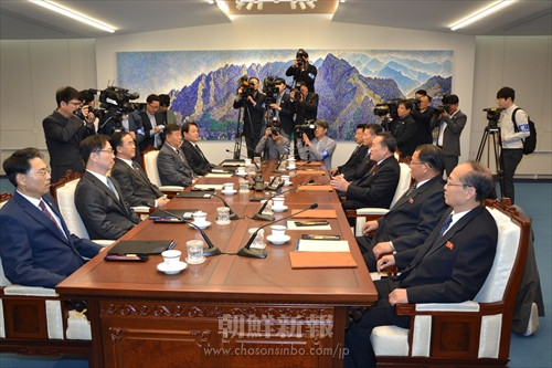 「平和の家」で行われた高位級会談。今年5回目となる 【開城発=姜イルク】「9月平壌共同宣言」(以下、共同宣言)履行のための北南高位級会談が15日、板門店南側地域の「平和の家」で行われた。会談では共同宣言を徹底して履行し、北南関係を新たな高い段階へと発展させるための実践的方途について協議、7項目からなる共同報道文を採択した。