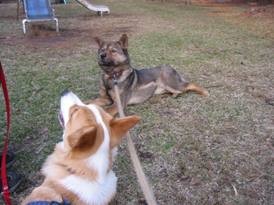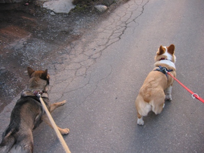 最近、夕方の散歩はママの実家の愛犬。川上犬、ひめ(通称しめこ)と一緒です。 相変わらずのシャイぶりでチポンが「遊ぼうよ〜」と近づいても、そっと交わしてしまう しめこちゃんなのです。 ところが、おやつを使っての訓練を始めると一緒にやるんですね〜 でも、すごーく微妙な距離・・・ しめこさん。 おやつ上げるから仲良く遊んでおくれよ〜