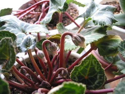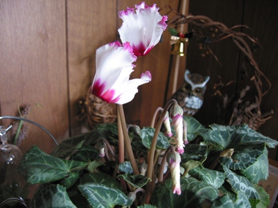毎年、シクラメンを買って夏越しに挑戦するんですが いつも失敗して夏を越せませんでした。 しかし、今年は一鉢だけ成功 10月に植え替えをしてやっと花芽が立ってきました。 花芽が出てきてから一ヶ月位でやっと咲き出しました。 二本目も咲き、これから沢山咲きそうです。 夏越しの方法は、「休眠させない方法」でやりました。 日陰の風通しのイイ所に置いて水はたまにくれる程度で 今年は何で成功したか分かりません。 五鉢やってこれだけが成功!この鉢が強かったのかな? 今年も無事に夏越しさせて巨大な球根に育てるのが目標です。 |