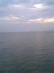身支度を整えデッキに出てみると、薄い雲の中から朝日が見えますね。