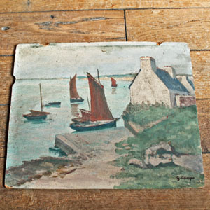 ![]() 古いBretagneの漁港の様子が描かれた油絵。