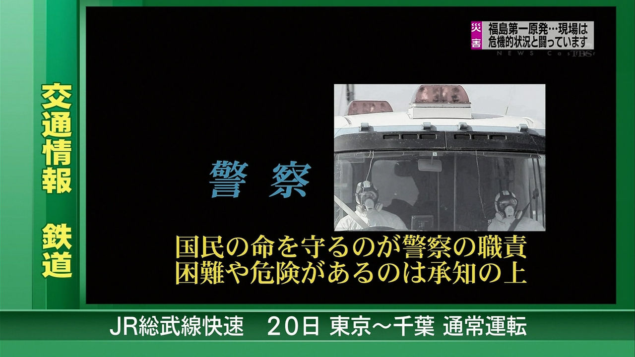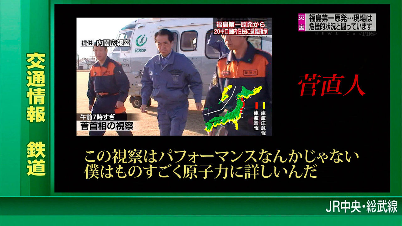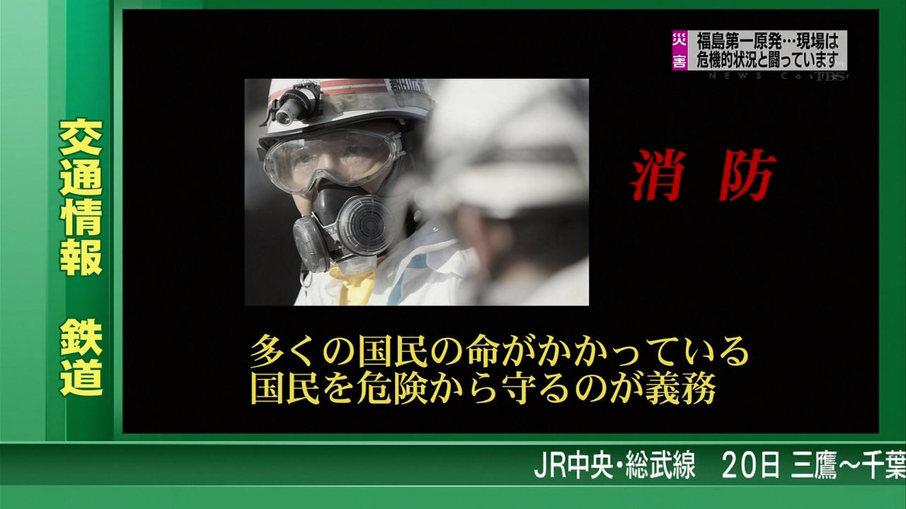 伊達は、各テレビ局が「一致団結してほしい」と口にする。「各局が同じ情報を流している場合じゃない。ある局は安否情報、別の局は原発、そしてまた別の局はお笑いとか野球とかの娯楽、という風に役割を決めて放送する。実際に、そんな状況だと思う」