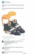 アディダス公式フェイスブックに、新作スニーカー「JS Roundhouse Mids」の画像が投稿されたのは6月14日。オレンジ色の輪っかがハイカットタイプのスニーカーと鎖でつながれているというデザイン。その画像を見て「奴隷や囚人を思わせる」「醜い」という批判的なコメントが殺到がした。その一方で、「ユニーク」「トライしてみたい」という肯定的な意見もあり、実に4000件以上のコメントが寄せられている。