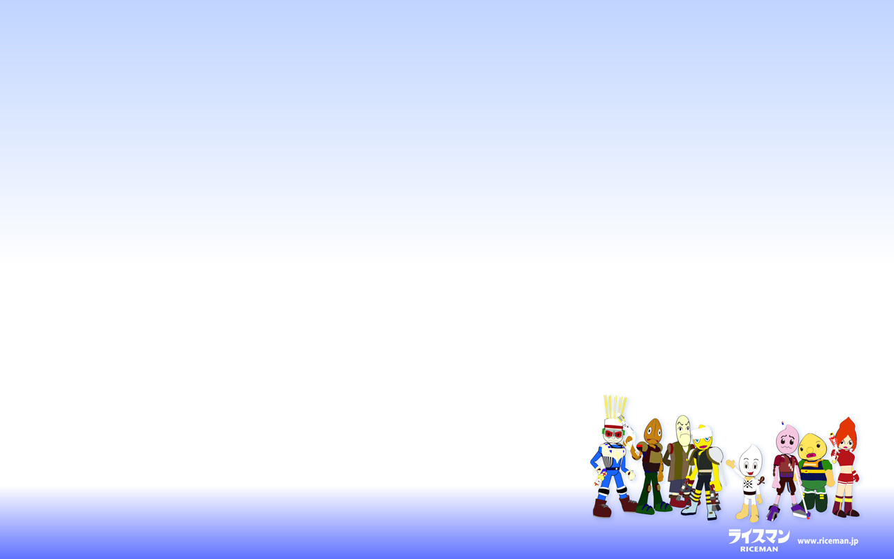 ライスマン壁紙 PART4 は定番の「全員集合バージョン」です! みなさんのデスクトップの片すみでライスマン、モカタロウ、ヒッコリーズのメンバーが、 パソコンワークを応援します! 今回お届けしている壁紙の画像は、リンクフリーですので、 ご自由にみなさんのブログの記事として使ってくださいね! 画像は「転載可」になっていますので、お気軽にどうぞ! おや!? いま気づきましたが、人気度の☆が黄色く「☆☆」=2個点灯していますね! おお、これは新年早々うれしいです! みなさんがたくさんのご訪問とコメントをくださったおかげですね! 本当にありがとうございます! これからさらなる「☆☆☆」をめざしてがんばりますので、 何とぞよろしくお願いいたします! Sサイズ 1024×768 http://www.riceman.jp/blogparts/kabe/04s.jpg Lサイズ 1280×1024 http://www.riceman.jp/blogparts/kabe/04l.jpg ワイド画面サイズ 1280×800 http://www.riceman.jp/blogparts/kabe/04w.jpg