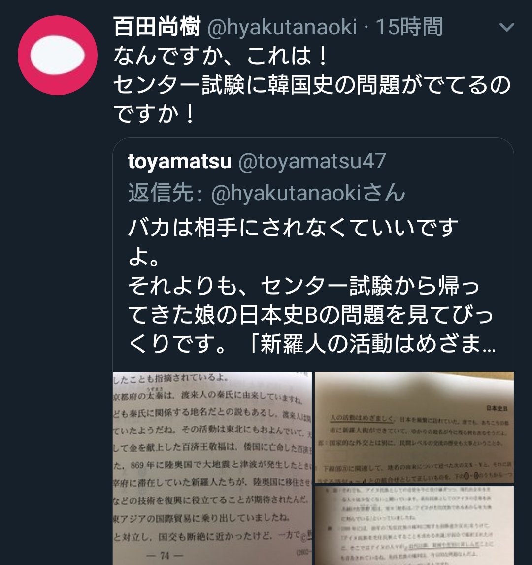 「センター試験に韓国史の問題がでてる」とお怒りの御仁は、今まで何も関心を払わず生きてきたのだろう。「日本史B」のリード文は、日本には古来から渡来人に由来する地名があるという話。日本社会の色んな部分に大陸との歴史的な関係が刻印されているのだが、その御仁は自分が無知だとご自慢の様子。