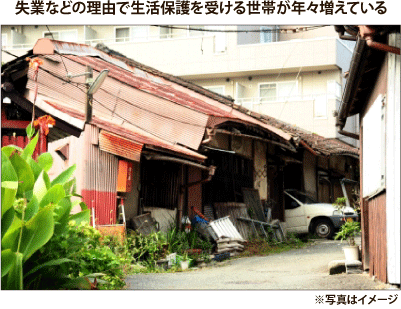 2009年度に全国で生活保護を受けた世帯は、約127万(月平均)件にも上り、対前年度比9.5%と大幅増になっている。17年連続で増加傾向にあり、09年度は過去最多を更新している。この3月の保護人数は、186万6000人に上り、直近の1年間は毎月1万7000人程度のペースで増え続けている。
