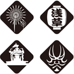 (2)内装和紙や寄せ小紋のほか、東京の伝統工芸品である江戸切子などの柄とともに、沿線由来のイラストを使用し、落ち着きのある和の雰囲気の中にも遊び心がある空間デザイン