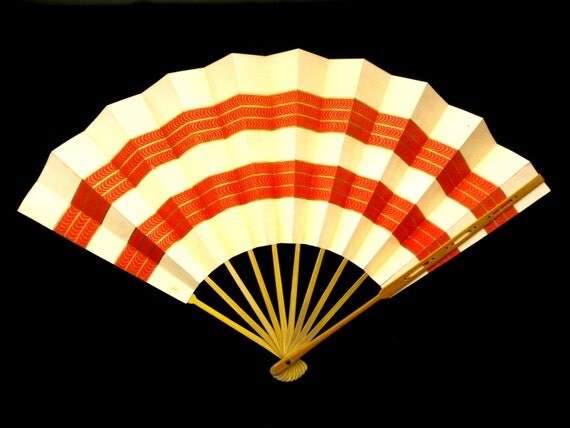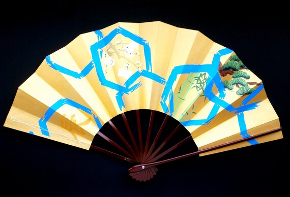 It is about 33 cm long and when opened about 52 cm wide. It is in good condition but it is vintage therefore it isn't perfect. Please look at the pictures carefully to see that there are some dots and marks and discolorations. Other hand fans on our etsy shop https://www.etsy.com/shop/VintageFromJapan?section_id=6181926 |