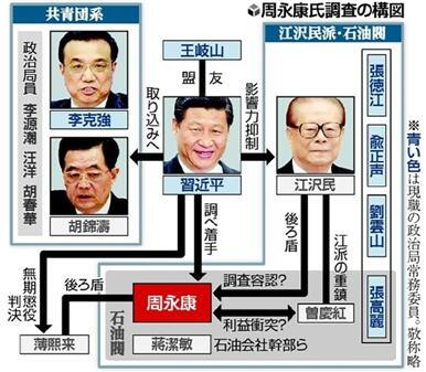 このタイミングで、この場所で事故が起こった背景は あるのだろうか。 これについての興味深い記事を見た。 以下のご紹介する。 転載ここから。 *注: 文章中の画像、表はブログ主が挿入しました。 現在ビジネス 天津の大爆発は江沢民派の反撃か!? 習近平vs江沢民の仁義なき戦い、いよいよ最終局面へ 2015年08月17日(月) http://gendai.ismedia.jp/articles/-/44749 先々週、北京を訪れた。中国はこの夏から秋にかけて、いろんな意味で転機を迎える予感がした。今回は、特に、毎年8月上旬に開かれている中国共産党の重要会議「北戴河会議」を中心に、感じたところを述べたい。 江沢民派の一掃に勝負を賭ける習近平主席中国共産党幹部は、8月上旬に1週間程、河北省北戴河で、いわゆる北戴河会議を開く習慣がある。この会議の特徴は、中国共産党の最高意志決定機関である党中央政治局常務委員会議(トップ7)に加えて、長老(常務委員OB)たちにも発言権があることだ。今年は、この会議が、ここ3年近く続いてきた習近平執行部と江沢民一派の権力闘争の「決戦」の場になる予定だった。 http://miyabiz.com/contents/media/5/20131115-20131115-column.jpg