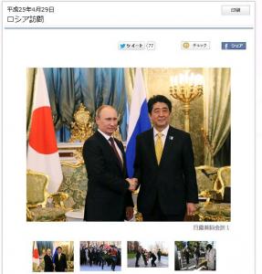 ■安倍首相GW中のロシア・中東訪問 2013年4月28日から5月4日の予定で安倍首相はロシア、サウジアラビア、アラブ首長国連邦、トルコを訪問し首脳会談を行う。 特に、日本の首相として公式にロシアを訪問するのは10年ぶりのことになる。