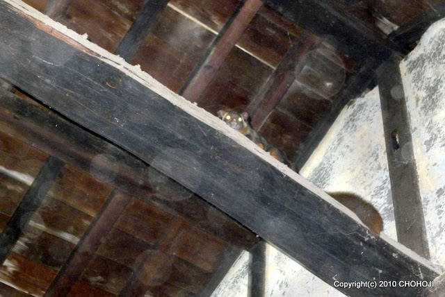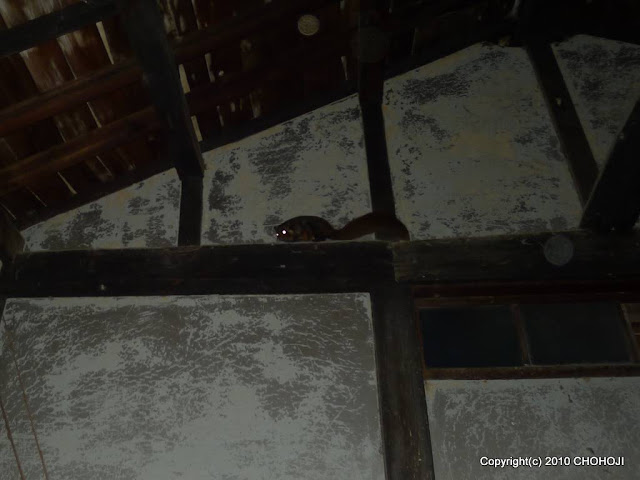 すばやく動くので、なかなかちゃんと写真が撮れません 天井の隅の穴から山に帰りました |