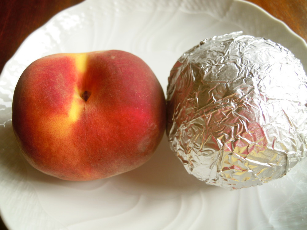 アルミホイルでぴったりと桃をくるんで冷蔵庫にしまっておくだけです。