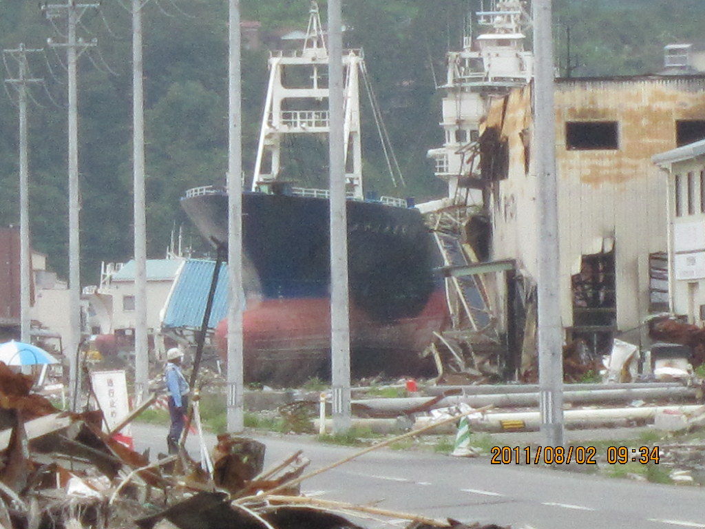 気仙沼の打ち上げられた漁船の解体が始まるのをニュースで知り、自分の目で直に見たかったのです。