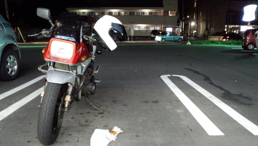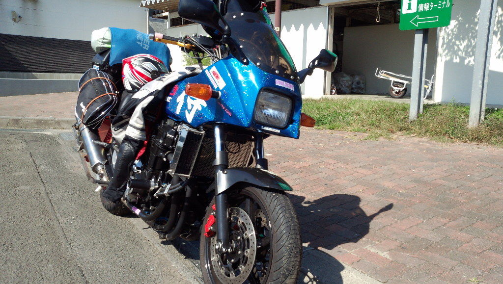 次の休憩&給油で入った菅生PAで、ニンジゃカウルを装着したカスタムバイクを発見しました。