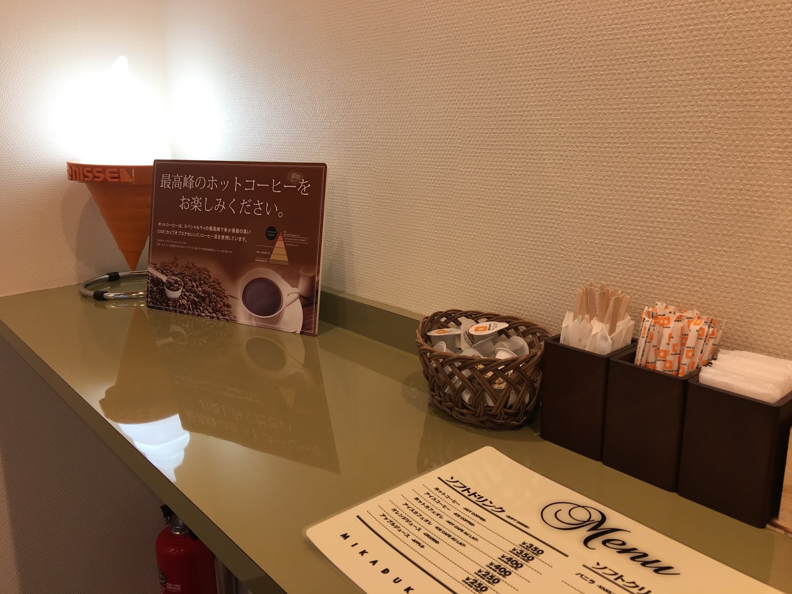 横手に椅子はありませんがイートインコーナーとなっております。