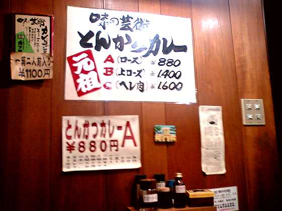 私はこのお店にはもう20年近く通っています。 今日のように一緒に人を連れて行った数も もう30人は確実に越えていますね(笑) 誰を連れて行っても必ず 「美味しかった! こんなカレー初めてです♪」 と、とても喜んでくれますので紹介しがいのあるお店です!! 20年来変わっていない価格!!http://oyaji3.com/b/katuya02.jpgなんと、「とんかつカレー A ¥880」の