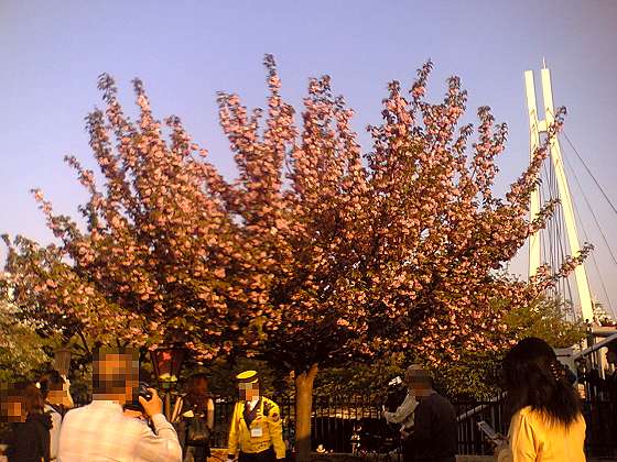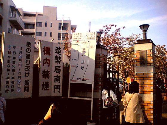 ◆関連記事 プロローグでは、ほぼアナスタシアの話題ばかりで 肝心の桜の写真がほとんどありませんでした。すみません(汗; しかも、どうやらアナスタシアにこのブログのURLを伝えたのが悪かったのでしょうか? このアバター姿を見て誤解されてしまったのか、 E-Mailの返信がまだありません(つД`) 今から、アバターを裏のプロフィール画像に変更しても 「時すでに遅し」でしょうか?……_| ̄|○ ・・・・それはともかく、桜です♪ 夕方に行ったのは大正解でしたね。 なぜか、造幣局にはライトアップ設備が全く無く 夜桜は周囲が暗くて、そんなに楽しめません。 ぼんぼりのライトが少し当たっている部分しか見えないので 昼間に行くに限る!と思いました。 すぐそばの大川の川沿いの桜の樹には ライトアップ設備があるのですけど・・・。 通り抜けは、一方通行になっていて500mほどの直線の道になっています。 入り口は造幣局の南門から入ります。 入り口付近の立派な枝ぶりの桜http://oyaji3.com/b/2008ozkt04.jpg枝の向きが綺麗に放射線状に天空に向いていて