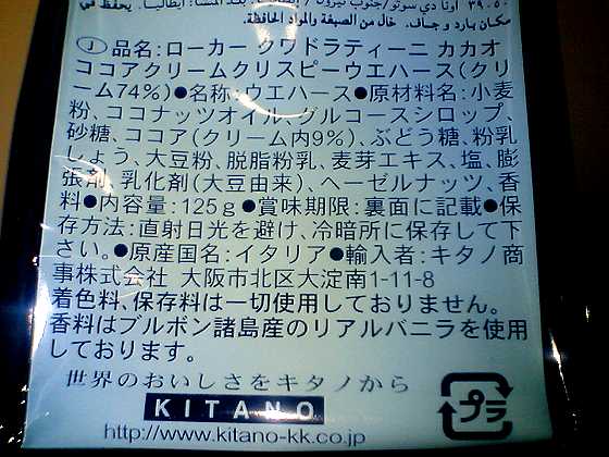 ローカー クワドラティーニ カカオ ウェハース ウエハース 2月にポロショコラを見つけたスーパーKOHYOさんの同じ棚で ちょっと気になった商品がありました。 それがこのローカー クワドラティーニ(カカオ) という チョコウエハースでした。 ウエハースって、あんまり購入することって無かったのですが イタリーナンバーワンって書いてあるし、 置いている棚が、いつも「コレッ!」っていう掘り出し物が置いてある 場所だったのでおそらく間違いは無いだろうと思い買って来ました♪ はい、正解です♪ とっても美味しいですし、ネット上でも評判のようです。 このメーカーの製品も、例のトランスゼロ(トランス脂肪酸0)商品で 着色料・保存料を一切使用していない安心なお菓子だそうです♪ 香料にブルボン諸島産のリアルバニラを使用って書いてあるんですけど ・・・と言われても、どこのことだかピンと来ないのですが(笑) 一応、先日またポロショコラを入荷して欲しいとの要望アンケートを出しておきました。 YTO amatou chocolate Loacker