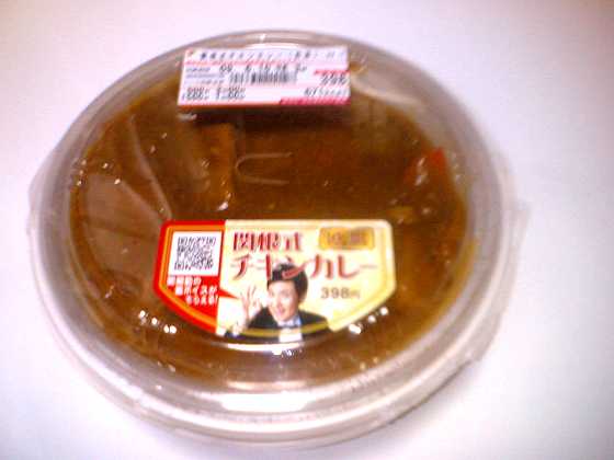 関根式チキンカレー(欧風) セブンイレブン カレー部 黒ぽん ★うちには罪なことをしてくれる常連様がいらっしゃいます。 今週は、月曜にお休みをもらってたのですが 日曜日のお昼に私を惑わし 丸々2日半もの間、相当に悶々とさせた上に 給料日まであと1週間もあるのに、後先を考えずに 猛烈な購入意欲を出させる記事をアップして下さる ありがたい常連様がいます。 それがこちらの記事です。 それからずっともう我慢出来ない!! という状態が続き 私のブレインは60時間以上、この「関根式チキンカレー」に支配されまくりました。 そして、それが臨界状態に達した今日の会社帰りに 自転車がパクられて以来、ほとんど寄ることのなくなった 駅から徒歩800歩ぐらいの所にあるセブンイレブンに 久しぶりに、必死に向かっている私が居ました。 店舗に入り、カレーの置いてそうな棚に向かう。 ・・・あった! 最後の1つがポツンと俺を待っていた!! 棚には、最後の1食となったこれが鎮座しておりました。 これが、lqojさんの記事をきっかけに