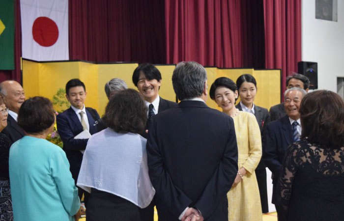 そして午後4時8分、殿下は「お言葉」を述べられた。参加者は全員起立した状態で逐次ポルトガル語に通訳される「お言葉」を傾聴。懇談会では、鹿田理事長と山元毅在リオ総領事の案内で、ご夫妻は移住地や団体ごとに10グループに分けられた参加者らと対話された。ご夫妻は参加者らに気さくに質問され、最後には出席者全員と握手をされた。ご夫妻への記念品には「コルコバードの丘が描かれた記念皿(純金使用)」が贈呈された。