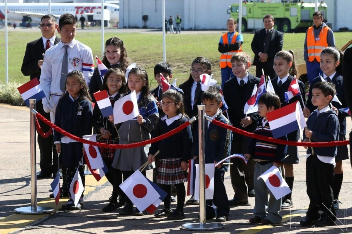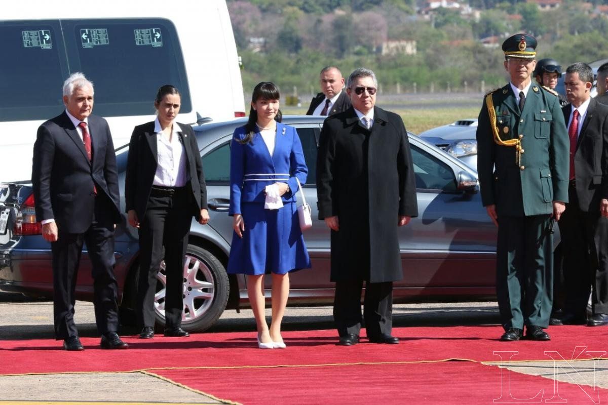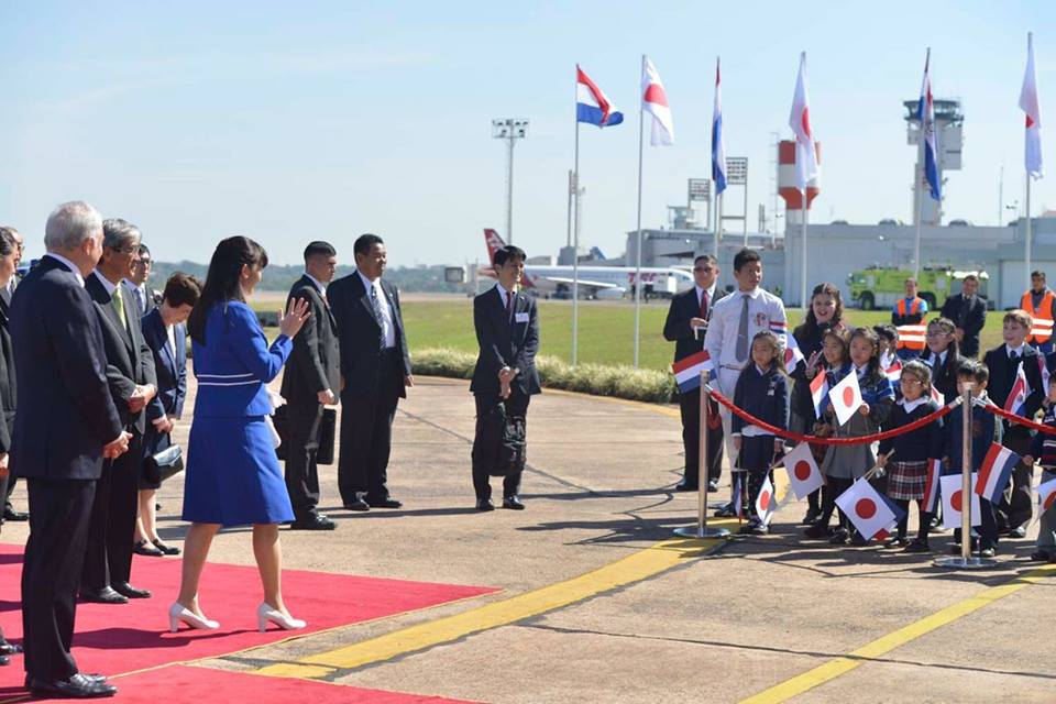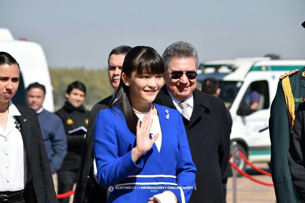Princesa Mako ya piso tierra paraguaya Poco despues de las 09:00 horas de este miercoles y en medio de un fuerte custodio de seguridad, la nieta del emperador Akihito de Japon, la princesa Mako, piso tierras paraguayas. Su alteza Mako fue recibida por el vicecanciller nacional, Oscar Cabello, durante el acto protocolar en el Aeropuerto Internacional Silvio Pettirossi.
