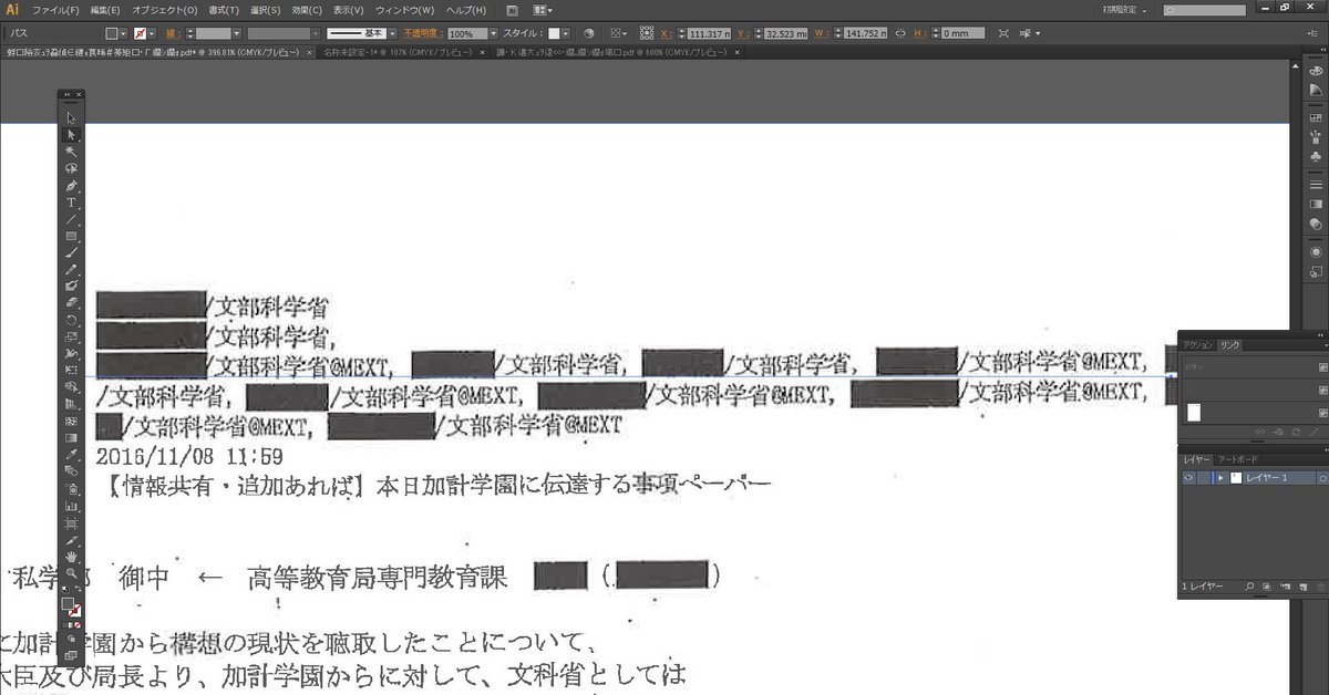 加計学園圧力文書[4]え〜と、Illustrator持ってる皆さん、民進党サイトのpdfをIllustratorで開けてみてください。こんなことになりませんか??なんか複数のデータをつぎはぎして作られてるんですけど。。https://www.minshin.or.jp/article/111935/
