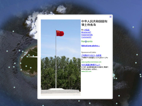 Google Earth(データ上)では、魚釣島に中国国旗が掲揚 http://galasoku.livedoor.biz/archives/921014.html ガラパゴス速報さんブログより 次は、魚釣島の拡大図。 Google Earth(データ上)で、魚釣島に中国国旗が掲揚されていることを示す画像。 以下、所感 グーグルが、日本側から 中国名併記の削除を要請された際、 おそらくさまざまなものを参照するのではないかと思います。 Google Map、Google Earth ・・・。 日本では、このようなものに、事実関係が確定しないものを記載するのは 「よくない」 もっと言えば、「恥ずかしいこと」 「恥」 という一般認識がありますが、 もし 違う文化であれば、 「なんでも書いちゃえ!」 もあり、かもしれません。 もうとりあえず、何でも書く。 嘘でも、まだ判定されていないことでも、自分に利分があるものは、何でもいい。 「書いてしまえ」 上記、Google Earth の画像を見ると、そういうものが垣間見れるような気がします。 日本は、厳重なチェック体制をもって、 「いいじゃないか」 にせずに、いちいち誤りがあれば、すぐさま 「抗議する」。 これが重要だと思われます。 遅ればせ感がありますが、それでも、今回の 「自民党と 前原誠司外相の 『グーグルへの抗議』」 は非常に妥当であり、相手サイドからは、意外なものだったのではないでしょうか。 あの、おとなしい、文句も言えない 小日本が、と。 日本は、小日本でいいんです。 もとから小さい国なんだから、「それがどうした」 と 言ってやりましょう。 ただ、 「間違えはいちいち正す」。 これは、政治家の方々だけでなく、日本国民の義務 でもあります。 国民も、きちんと国を守るべく、監視しないといけない と感じます。 傍観者には ならないぞ